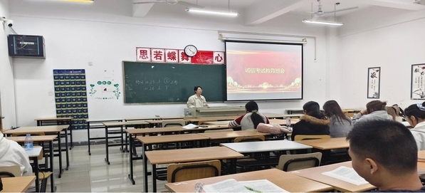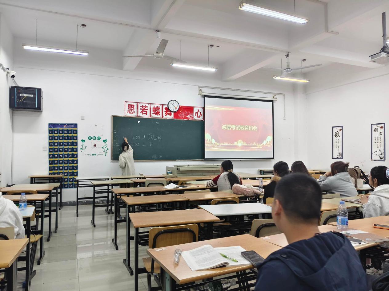 为确保教育成效,学院通过主题班会、现场宣传等形式,广泛发起诚信考试倡议,引导学生自觉抵制作弊行为,营造“诚信应考光荣、违纪舞弊可耻”的浓厚氛围。同时,学院进一步加强考前监督与服务,班主任密切关注学生学习状态,督促做好备考准备,并全力保障学生考试期间的安全。