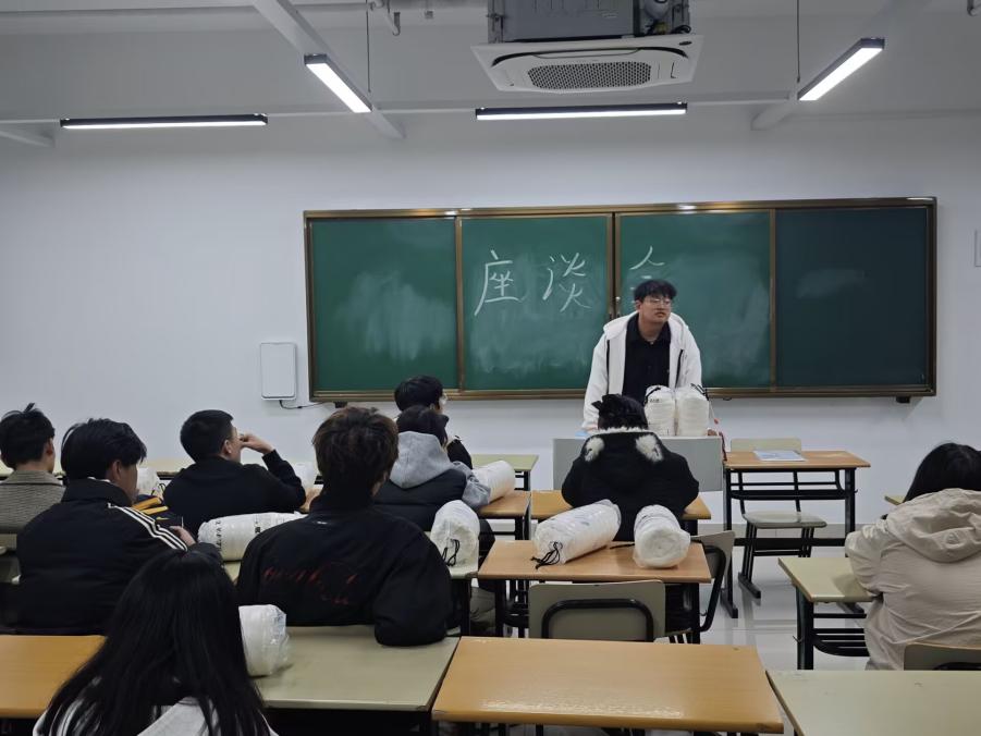座谈会伊始,杜老师代表学院向在场的家庭经济困难学生表达了深切的关怀与问候。他指出,学院始终关注每一位学生的成长与发展,致力解决学生发展中的各类困难,也希望每一位获得资助帮扶的同学好好珍惜,让每一分钱都落在实处、发挥效用。随后,两位老师为学生们发放了精心准备的冬日物资。