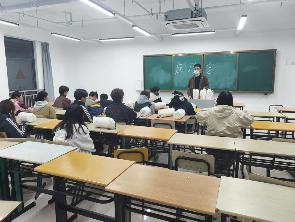 随后,吕林峰老师向同学们介绍了本年度资助奖助学金评选与资金发放情况。他详细讲解了资助政策的变化,以及学院为确保各类资助政策公平公正落地所采取的措施。在座谈交流环节,两位老师与同学们进行了亲切的交流。他们耐心询问同学们在生活、学习上是否遇到困难,并叮嘱大家要注意冬季防寒保暖以及宿舍用电安全。