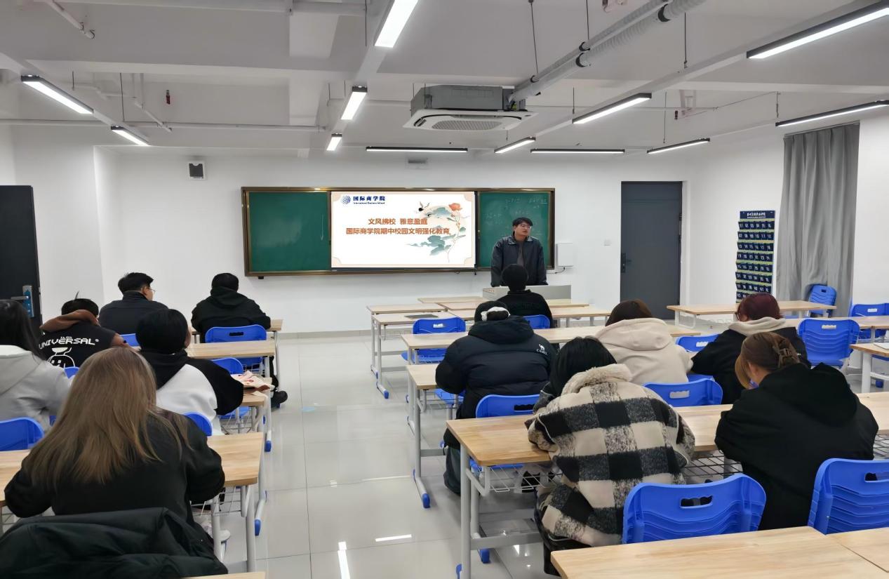 为深入贯彻落实立德树人根本任务,厚植学生文明素养根基,涵养和谐向上的校园风气,巩固前期建设成果。近日,国际商学院开展期中校园文明强化教育。