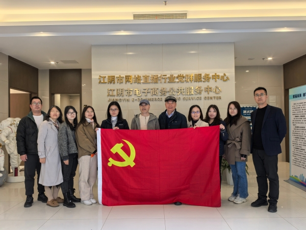 随后,大家来到了江阴市电子商务公共服务中心、江阴市网络直播行业党群服务中心参观学习。江阴市电子商务公共服务中心翟书记对大家的到来表示热烈欢迎,陪同参观了网络直播行业党群服务中心、县域新电商展厅、特色直播间及电商培训室等功能区域,并就中心的功能布局、运营模式和服务体系建设作了详细介绍,重点介绍了党群服务中心在服务网络主播等新就业群体方面所推出的创新举措及取得的阶段性成效。