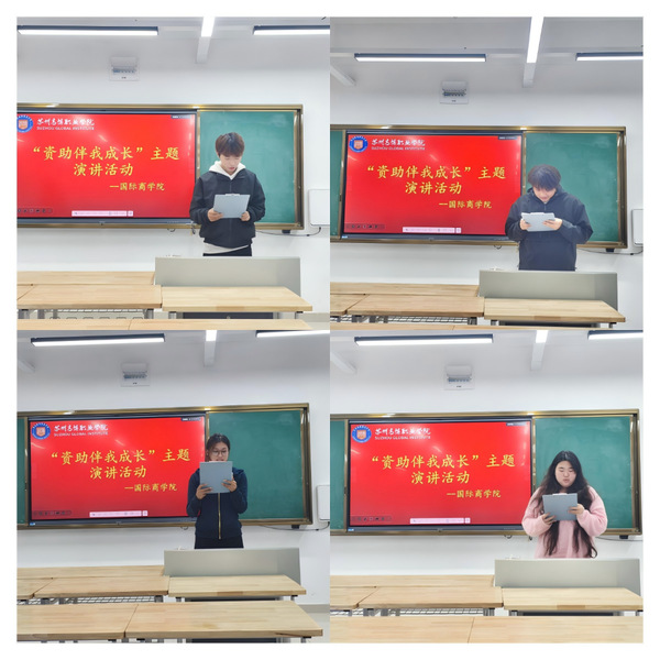为深入宣传国家资助政策,增强资助育人实效,激励广大学子常怀感恩之心、砥砺奋进之志,国际商学院于2025年11月26日晚,在35号楼301教室组织开展了“资助伴我成长”主题演讲比赛。国际商学院学生工作办公室主任杜相锋老师,学生党支部书记马俊涛老师,2025级新生辅导员吕林峰老师出席本次活动并担任评委。