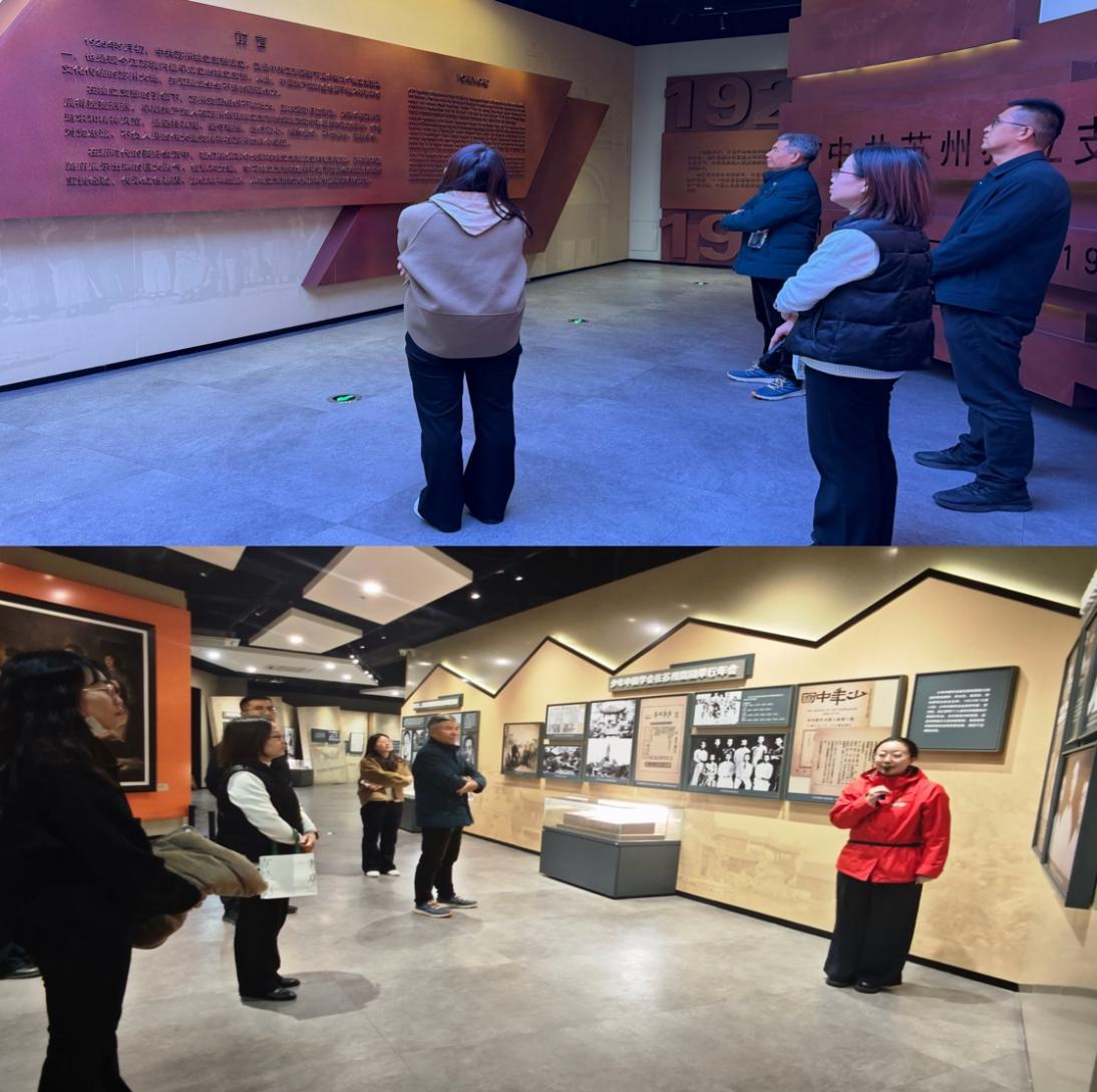为深入学习贯彻党的二十届四中全会精神,进一步加强党性教育、传承红色基因,弘扬革命精神,12月10日下午1点整,国际商学院党总支组织全体党员前往中共苏州独立支部旧址开展主题参观学习活动,追寻革命先辈的奋斗足迹,接受深刻的党性教育和精神洗礼。恰逢苏州独立支部成立一百周年,这场 “红色寻根” 之旅既有历史的厚度,更有实践的温度。
