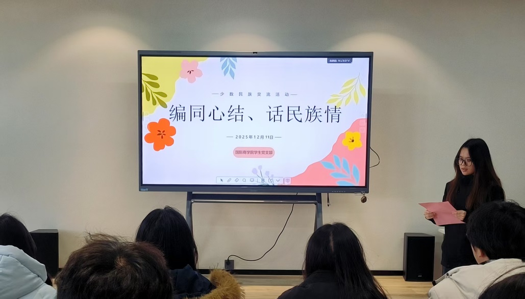 为深化民族团结教育,增进各民族学生之间的交流与情谊,12月11日中午1时,国际商学院学生党支部在北校区B栋宿舍楼一站式活动中心举办了“编同心结,话民族情”少数民族交流活动。活动吸引了学院少数民族同学与部分入党积极分子共同参与,由入党积极分子李露倩同学主持。