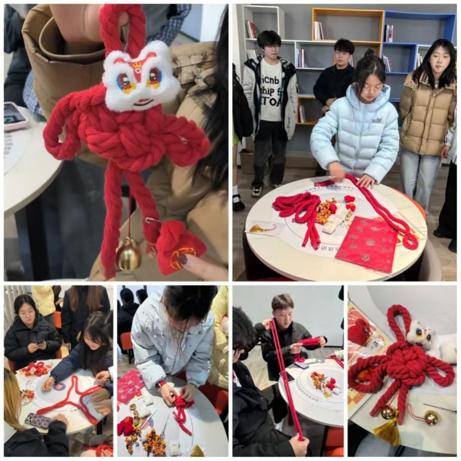 随后,活动进入“共编中国结”的实践环节。中国结作为中国传统手工艺,寓意团圆、和睦与吉祥,更是民族团结的生动象征。在轻松愉快的氛围中,各民族同学围坐一起,相互学习、交流编织技巧。一根根红线在指尖穿梭缠绕,逐渐变成一个个精美而充满寓意的同心结。这一过程不仅是手工的传递,更是心与心的交融,直观体现了“各民族像石榴籽一样紧紧抱在一起”的深厚情感。