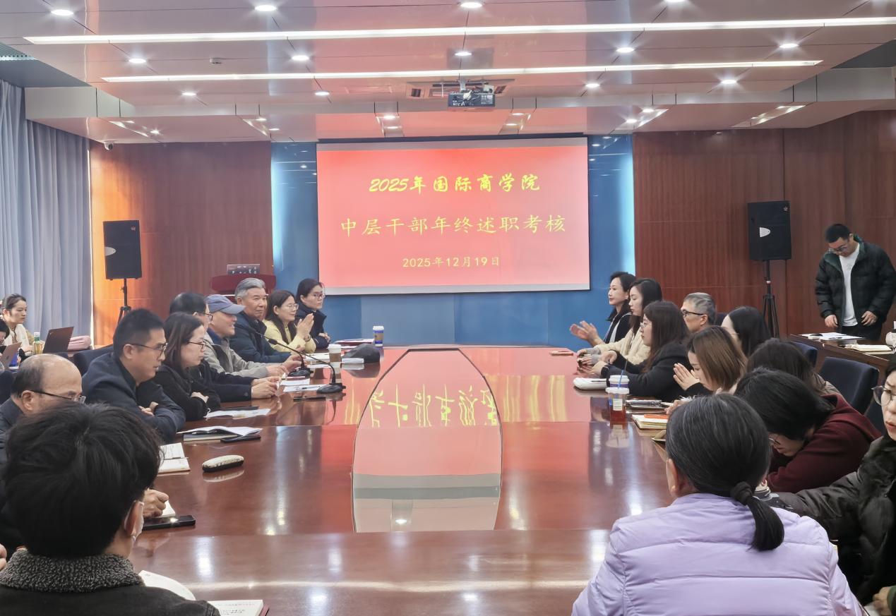 为全面总结年度工作成效,加强干部队伍建设,科学谋划未来发展,12月19日下午1时,国际商学院在实训楼201会议室召开学院中层干部年终述职考核会议。会议邀请到盛惠良副校长参加,国际商学院领导班子和全体教职工出席,会议由国际商学院乔桂明院长主持。