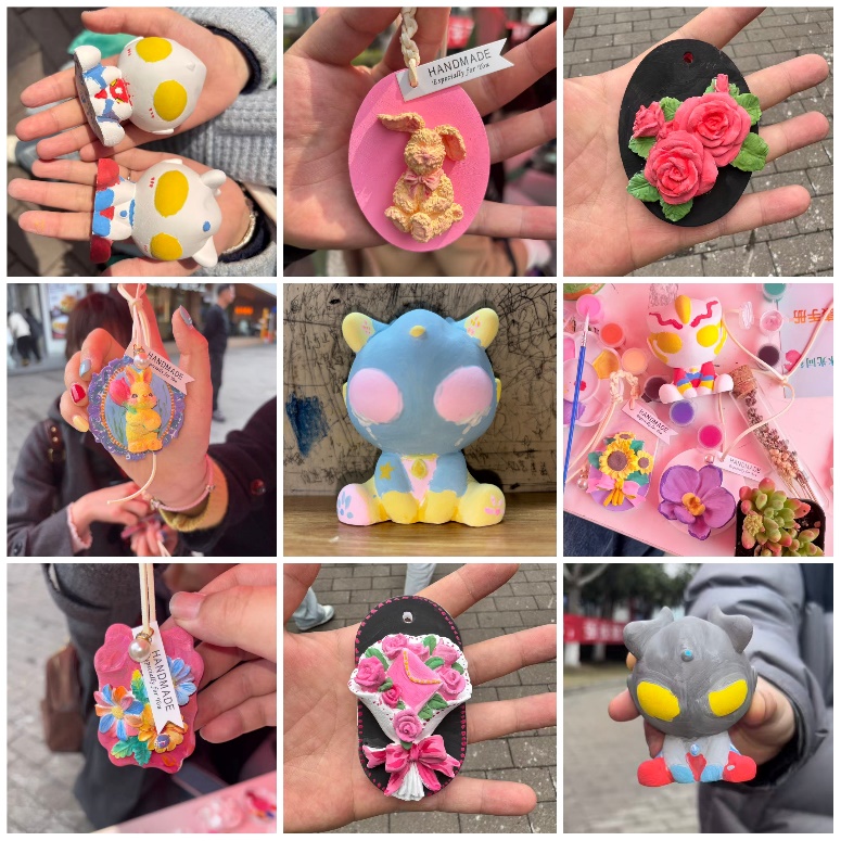 3月20日中午,商学院举办的广场互动教育活动,吸引了众多同学驻足参与。活动现场布置了长长的绘画桌,桌上整齐摆放着各式各样的香薰石膏玩具——有憨态可掬的小动物、精致小巧的花朵造型,还有充满童趣的卡通形象。同学们纷纷拿起画笔,蘸取五彩缤纷的颜料,专心致志地为手中的石膏玩具上色。