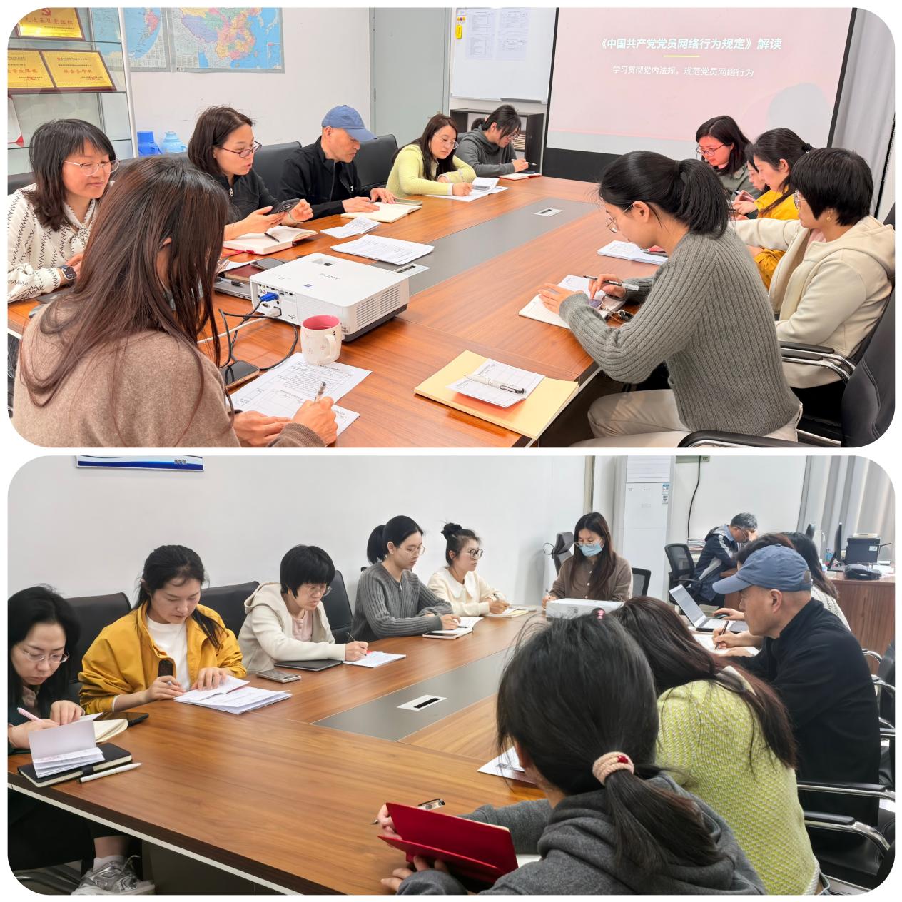 专题学习后,为强化学习成效,推动党员网络行为规范落地落实,党支部全体党员现场签署党员网络行为承诺书。大家郑重承诺,将严格遵守党内法规与网络行为规范,自觉规范网络言行,坚守纪律底线,弘扬新风正气,主动抵制网络乱象,以实际行动维护党员良好形象,守护风清气正的网络环境。